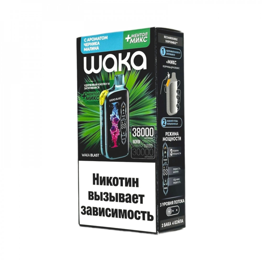 WAKA BLAST 38000 Hard - Черника малина + ментол микс - купить в Миллерово